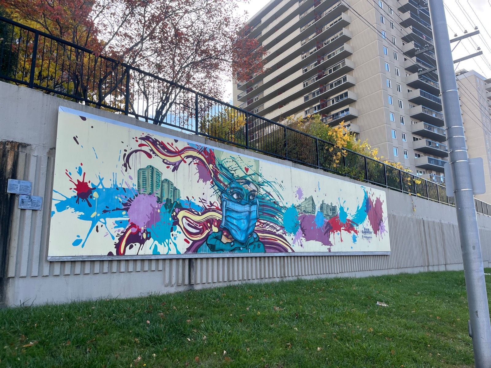 A mural that honors essential workers during the COVID-19 pandemic.