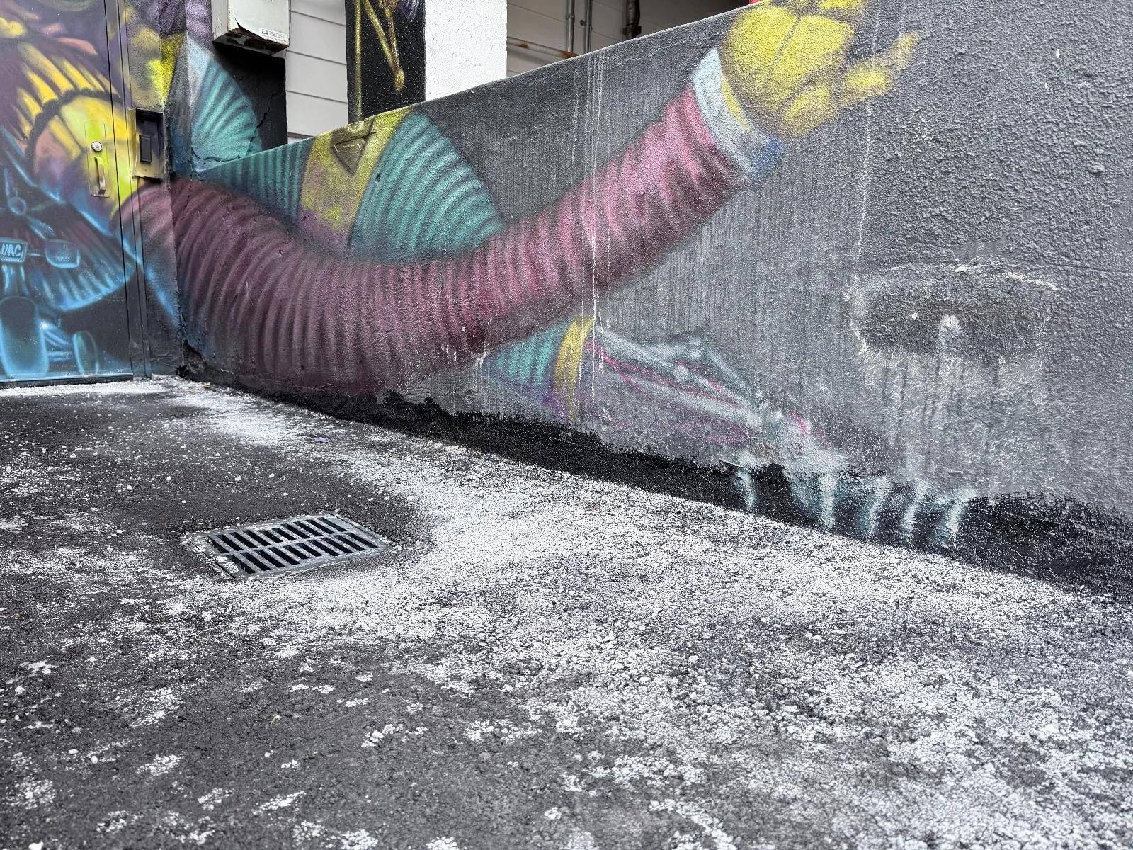 Graffiti Octobot by Martin Freundorfer is featured prominently on the exterior of the Urban Art Collectives' 50 Bayswater studio and creative hub.