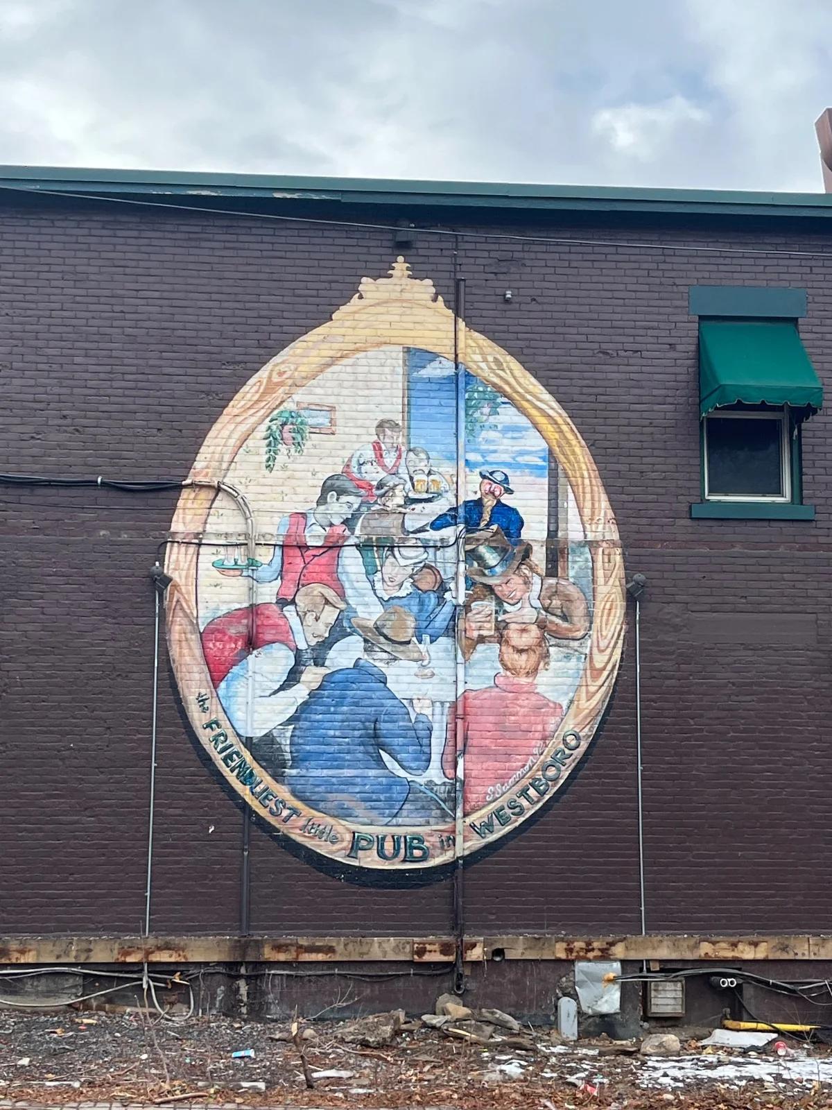 Located at 245 Richmond Road, this impressive 26ft tall and 14ft wide mural by artist Stephen Sammon is celebrated as the oldest mural in Westboro Village, a true landmark of the area's history. Installed in 1992 on the side of Whispers Pub, the artwork has been a continuous presence for decades. This piece is a unique feature of the Westboro arts scene: it serves as the backdrop for the side patio during summer months but can be viewed in its full glory during winter.