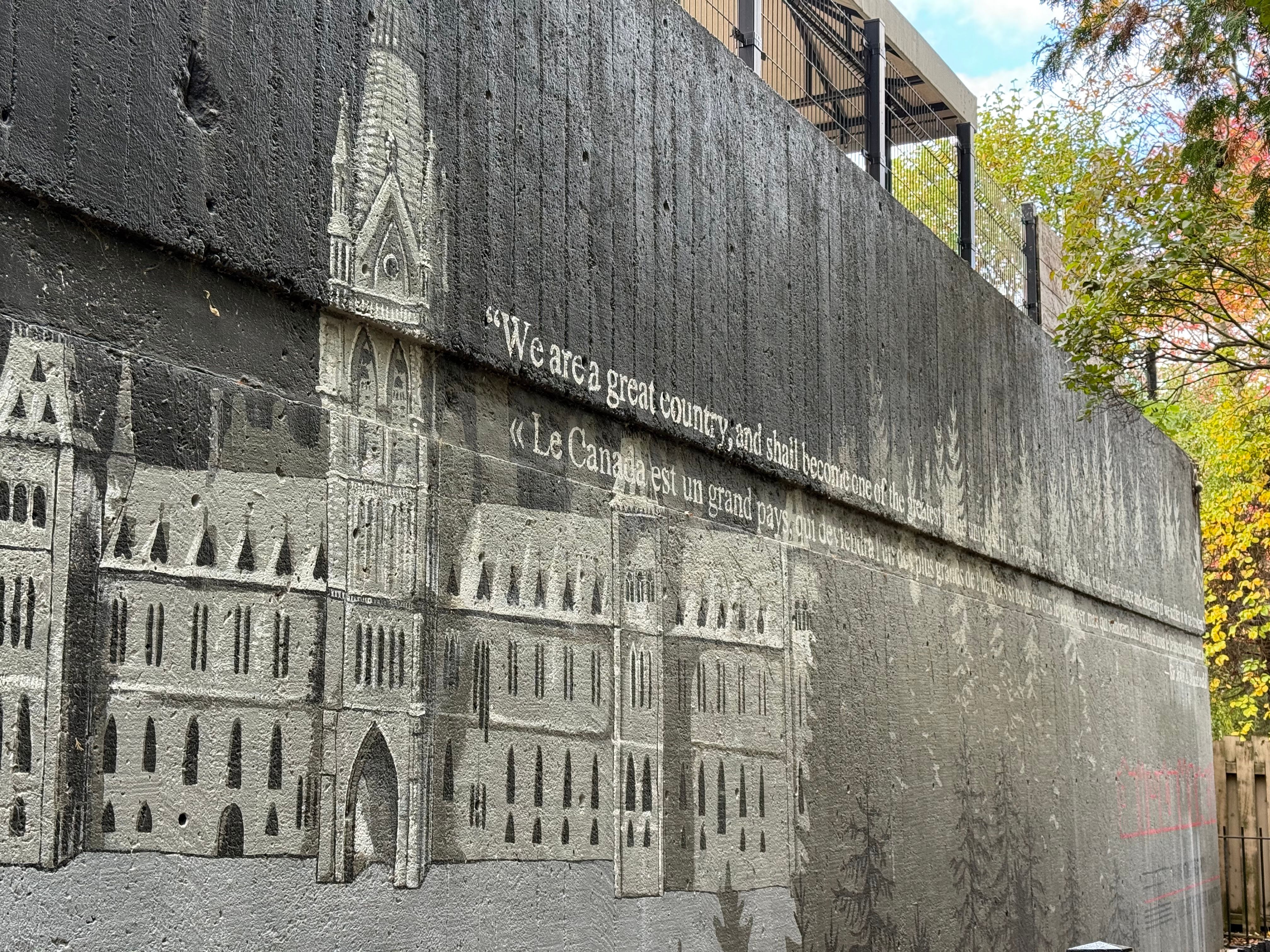 Cette murale, représentant Sir John A. Macdonald sur l'ancien site de sa résidence, a été créée grâce à un partenariat entre des élèves de l'École Secondaire Publique De La Salle et l'initiative Prime Ministers' Row. En archivant cette image, nous reconnaissons que bien que Macdonald soit reconnu comme le premier premier ministre du Canada, son héritage comprend un rôle déterminant dans les politiques qui ont mené au Système des pensionnats autochtones et au colonialisme en cours. Nous notons également que ce site se trouve sur le territoire non cédé du peuple Algonquin Anishinaabeg.