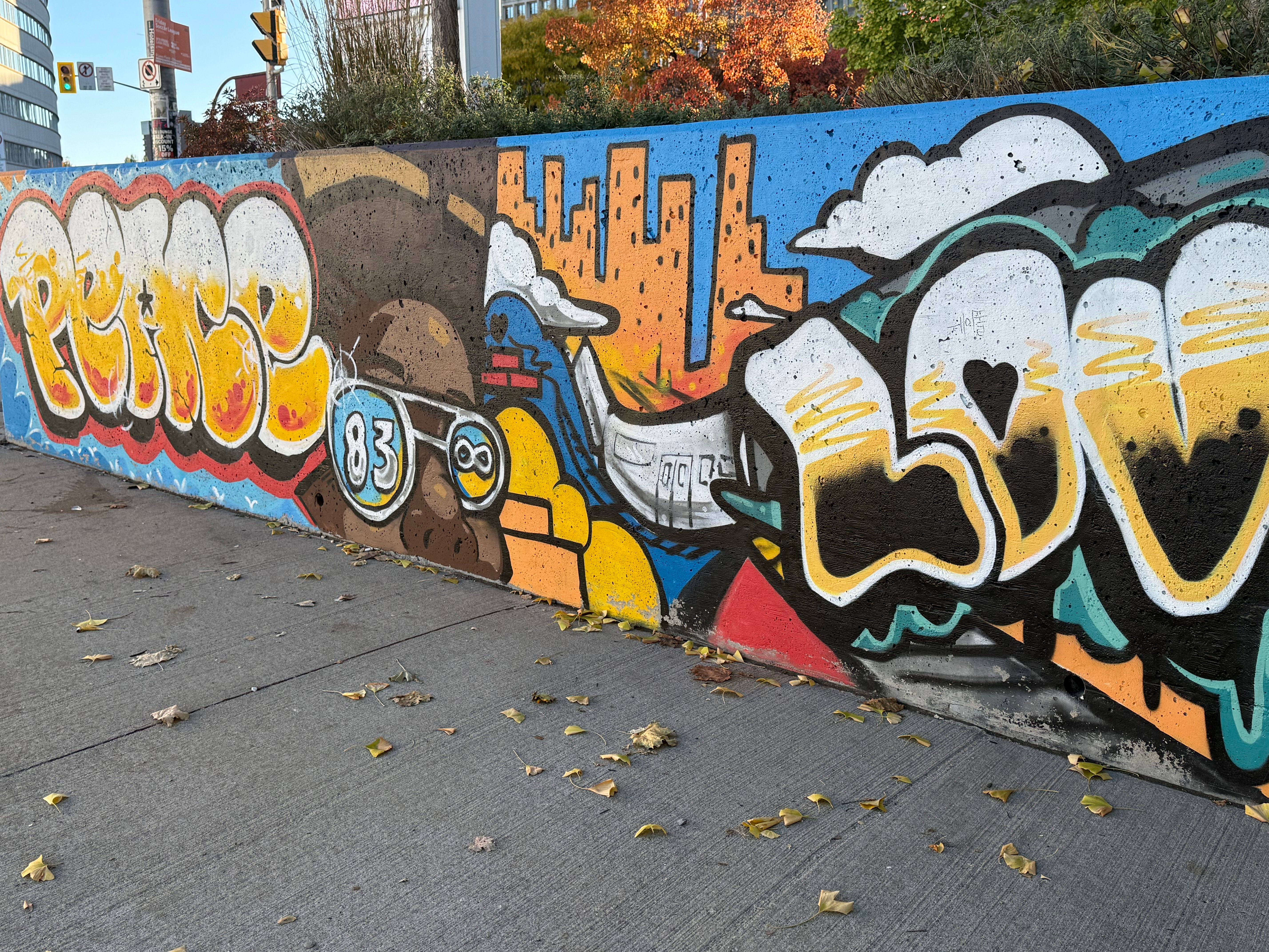 Réalisée en cinq jours au mois de septembre, cette fresque murale de Jimmy, Kal et Alberto rend un vibrant hommage à l'histoire locale du hip-hop. L'œuvre incarne visuellement les cinq piliers fondamentaux du mouvement : le breakdance, le MCing, le rap, le graffiti et la connaissance. Sur le plan stylistique, elle fait le pont entre l'esthétique « classique » de l'art du métro new-yorkais et les innovations modernes distinctives que ces artistes ont établies à Ottawa. Au-delà de son impact visuel, la fresque témoigne des racines profondes de la culture hip-hop, en mettant l'accent sur les thèmes de la justice sociale, de la joie communautaire et du soutien collectif. Le processus de création lui-même a servi de performance, au cours de laquelle les artistes ont activement interagi avec le public afin d'éduquer les passants et de démanteler les stéréotypes négatifs. En fin de compte, ces images constituent un argument visuel en faveur de la légitimité du graffiti en tant que forme d'art plutôt que comme acte de vandalisme.