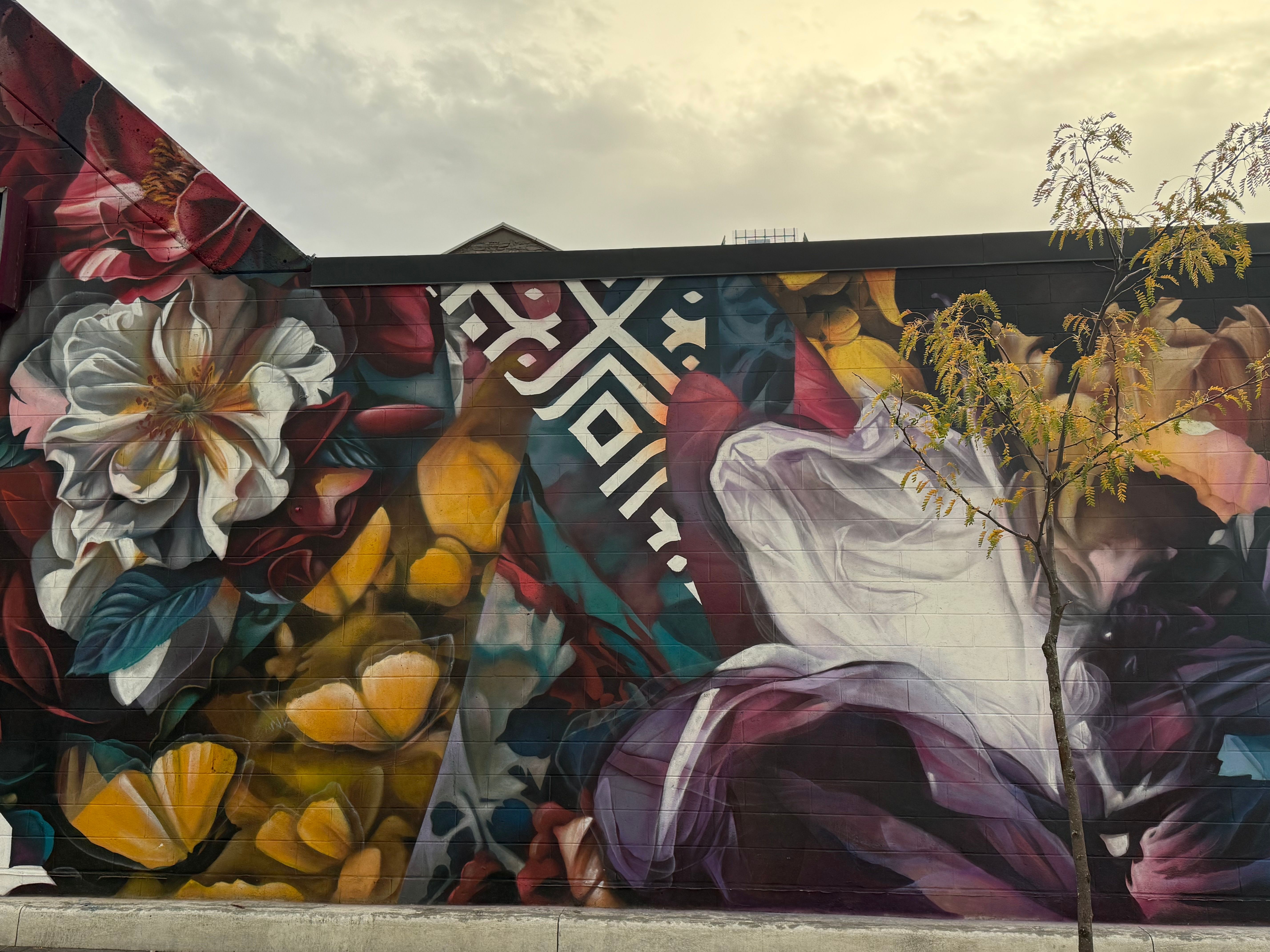 L'œuvre Still in Motion (Toujours en mouvement) explore visuellement la relation dynamique entre le changement continu et l'esprit communautaire inébranlable. La murale célèbre le renouveau du secteur tout en honorant son caractère permanent. Elle tire son énergie du rythme soutenu de la rue Rideau et de la scène artistique animée de la ville, capturant le pouls du centre-ville avec des clins d'œil aux pôles culturels comme le Centre national des Arts. La juxtaposition d'une danseuse fluide et de papillons délicats en mouvement sur des fleurs immobiles agit comme une contemplation puissante sur la durabilité et la croissance. L'œuvre est enrichie par une flore locale abstraite qui fait référence au Festival des tulipes et au marché By, ainsi que par des rubans qui guident l'œil du spectateur, symbolisant à la fois les liens sociaux unissant la communauté et le chemin sinueux du canal Rideau.